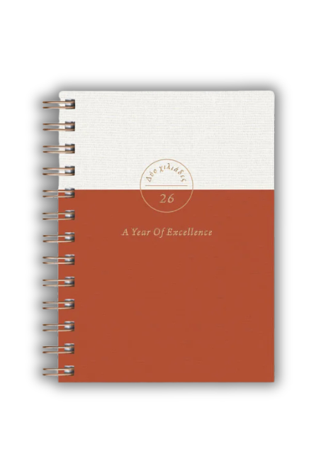 Ημερολόγιο ημερήσιο 2026 με σύγχρονο σχεδιασμό, μήνυμα παρακίνησης, ανάγλυφη υφή, μπρονζέ θερμοτυπία και spiral βιβλιοδεσία με σκληρό κάλυμμα.