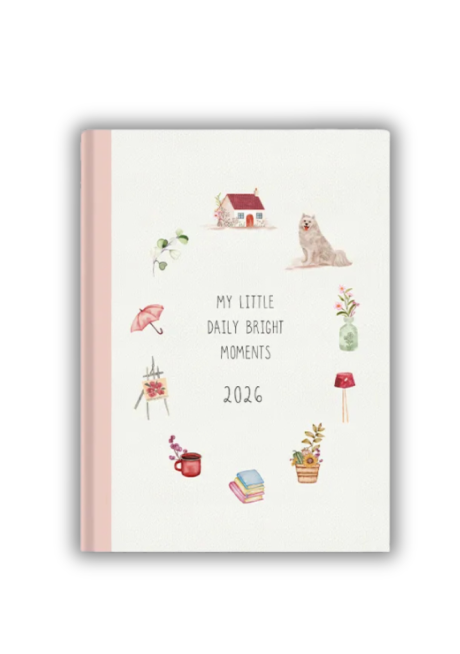 Ημερολόγιο ημερήσιο 2026 με ανέμελη και hygge αισθητική, χρωματιστή ράχη και κλασσική βιβλιοδεσία με σκληρό κάλυμμα.