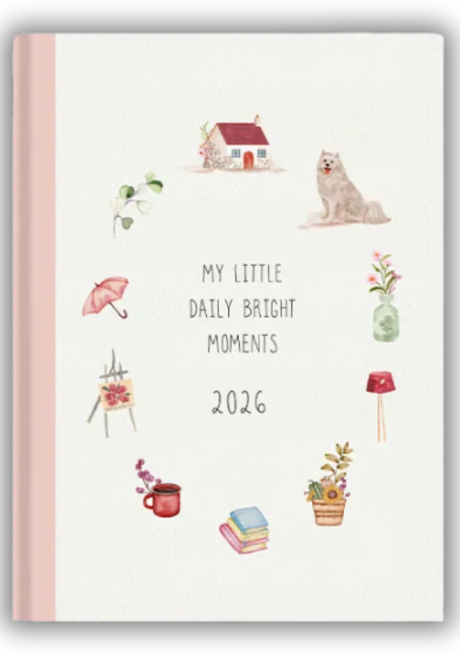 Ημερολόγιο ημερήσιο 2026 με ανέμελη και hygge αισθητική, χρωματιστή ράχη και κλασσική βιβλιοδεσία με σκληρό κάλυμμα.