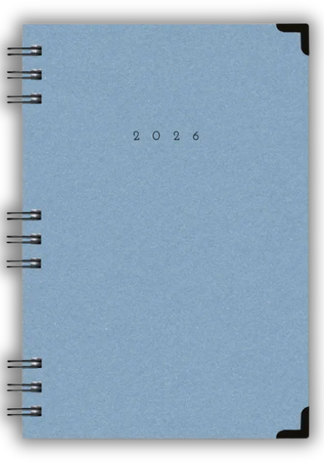 Ημερήσιο ημερολόγιο 2026 με μαύρο μεταλλικό spiral σε διακεκομμένο σχεδιασμό 3-3-3 και μαύρες γωνίες για κομψή προστασία. Το εξώφυλλο του είναι κατασκευασμένο από ειδικό χαρτί με ίνες βαμβακιού, προσφέροντας ξεχωριστή υφή και φυσικό χαρακτήρα.