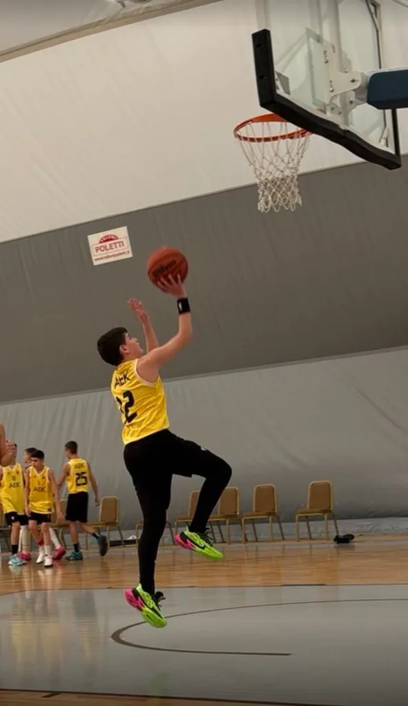 Ο Δημήτρης Ταγλής, μαθητής της Β΄ Γυμνασίου, είναι αθλητής καλαθοσφαίρισης στην ομάδα ΑΕΚ U14.