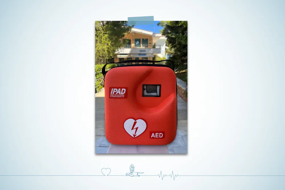 Το Σχολείο μας, ακολουθώντας τη γραμμή του Υπουργείου Παιδείας, εξοπλίστηκε με φορητό εξωτερικό απινιδωτή.